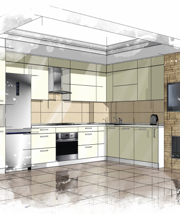 С проектом кухни необходимо определиться до начала ремонта. Заказать мебель правильно после окончательного замера помещения на стадии предчистовой/чистовой отделки, когда все коммуникации и электричество выведены согласно проекту.